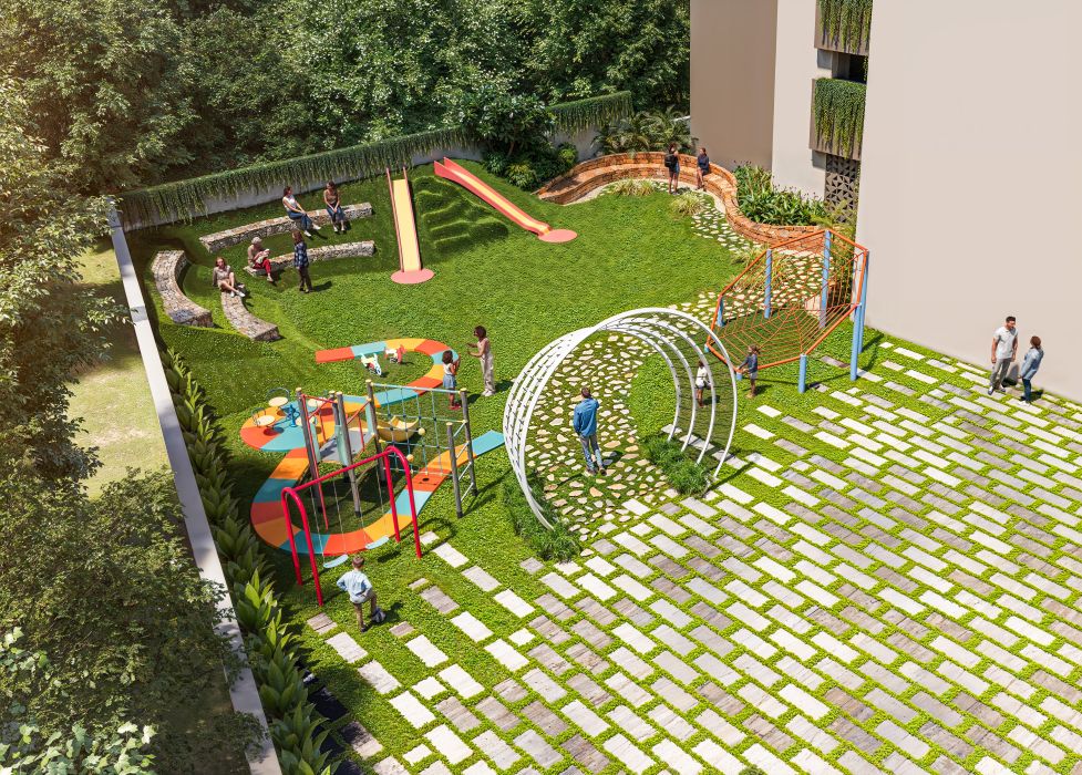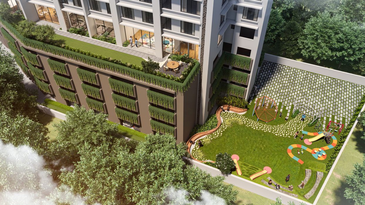 A 21 storey rising tower with 2 wings having modern 1&2 BHK homes designed for evolving families. 7000 sq ft. green open space with elder friendly amenities, child-safe play zones and future ready homes.